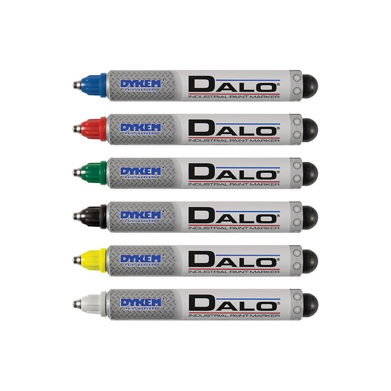 The DALO® marker stands out for its distinctive medium and broad oil-based paint markings. Its stainless steel-ball valve action tip writes through oil, grease and underwater without losing legibility or brightness even in extreme conditions